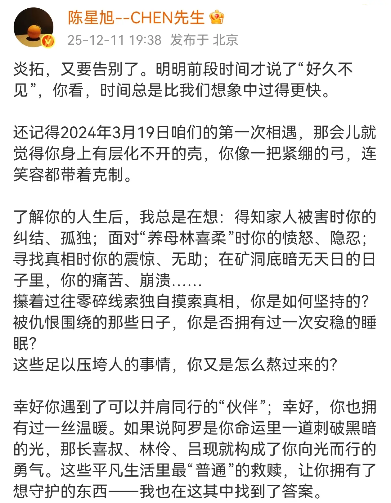 陈星旭“时间总是比我们想象中的要快”